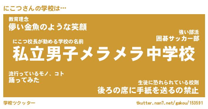 | ヘコむあだ名 | 『にこにー』『なまこ酢』『にこっぺ』 |
