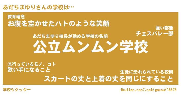 | 肩書あだ名 | 『あだちまゆり店長』『あだちまゆり団長』 |