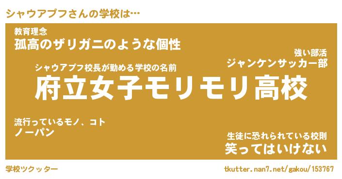 | ヒーロー風カッコイイあだ名 | 『スーパーシャウアプフ』『暗黒騎士シャ』 |
