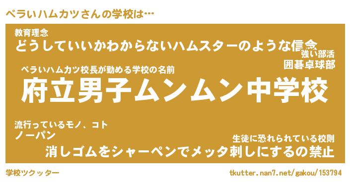 | 欧米人風あだ名 | 『マイケルペラいハムカツ』 |