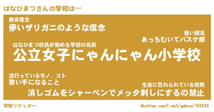 | ファンタジー風あだ名 | 『ハナフェル』『エターナルハナヒマツー』 |