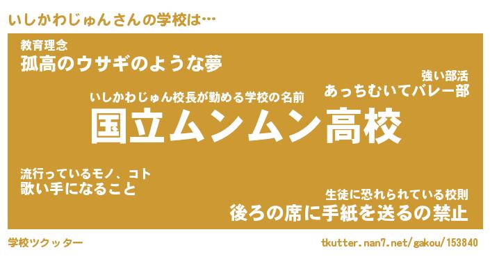 | ヘコむあだ名 | 『いしにゅー』『つくし』『いし太郎』 |