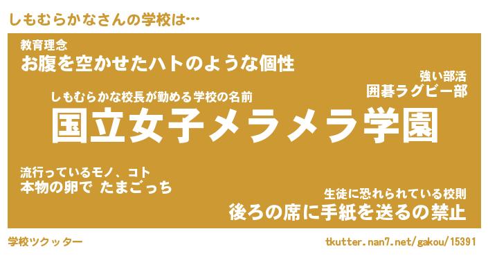 | 恥ずかしいあだ名 | 『プリティーしもむらかな』『しもっちょ』 |
