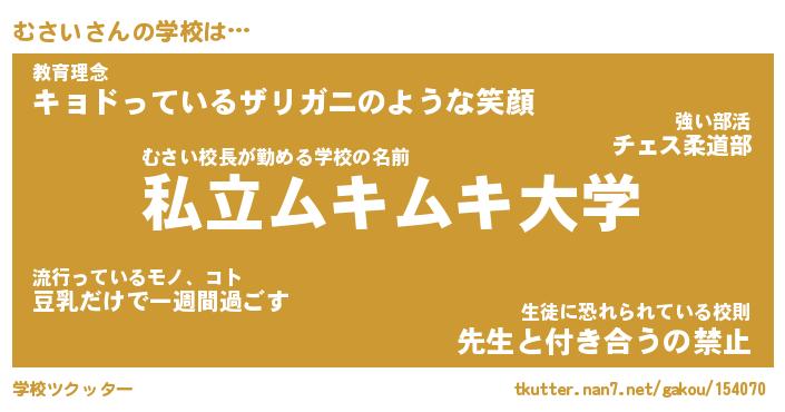 | ヘコむあだ名 | 『むさにー』『酢こんぶ』『むさっぺ』 |