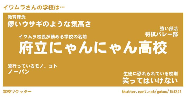 | ファンタジー風あだ名 | 『イワフェル』『エターナルイワムラー』 |