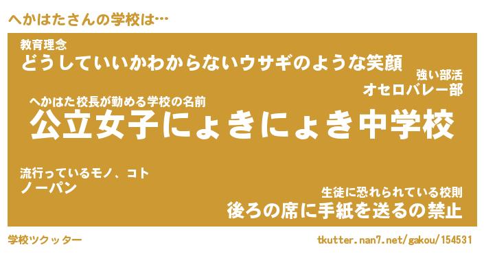 | ピコ太郎風あだ名 | 『ヘコ史郎』『ピヘ五郎』『ヘカ六郎』 |