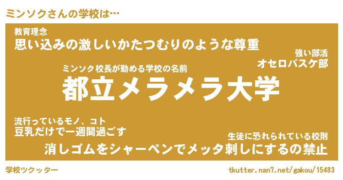 | 意味不明あだ名 | 『ペロリンミンソク』『永久保存ミンソク』 |