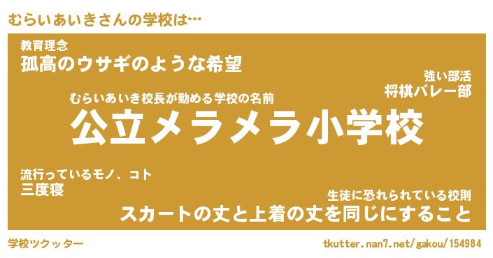 | 男性向けラノベタイトル風あだ名 | 『むらいあいきの憂鬱』 |
