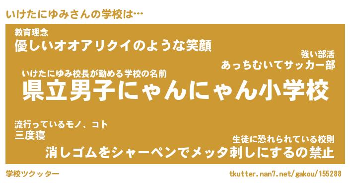 | 恥ずかしいあだ名 | 『プリティーいけたにゆみ』『いけっちょ』 |