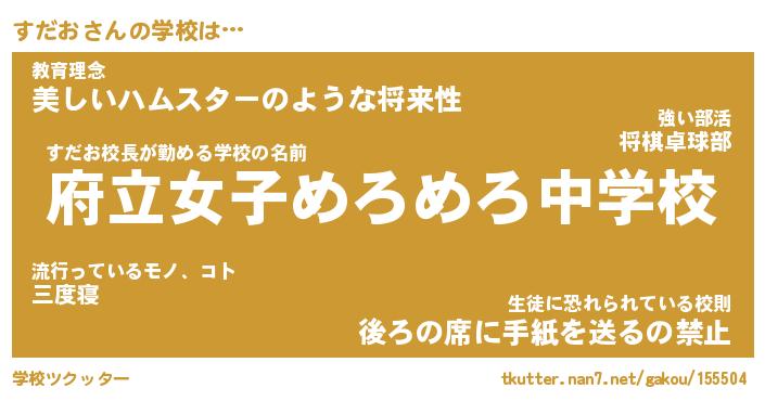 | ヘコむあだ名 | 『すだっふぃ~』『なまこ酢』 |