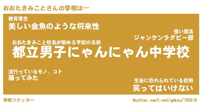 | 男性向けラノベタイトル風あだ名 | 『オオタキミコトアートオンライン』 |