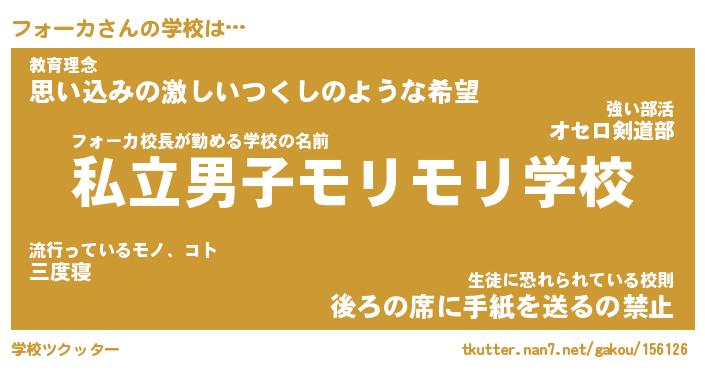 | 男性向けラノベタイトル風あだ名 | 『フォーカの憂鬱』 |