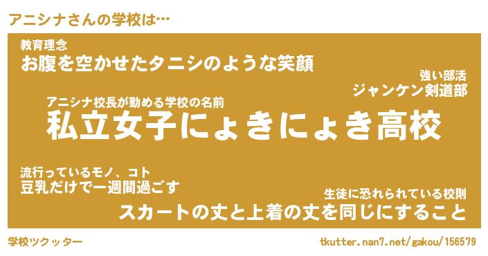 | 意味不明あだ名 | 『ペロリンアニシナ』『永久保存アニシナ』 |