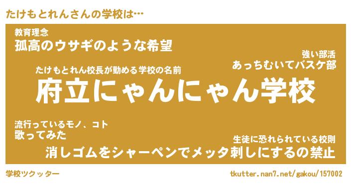 | ヘコむあだ名 | 『たけもー』『つくし』『たけを』 |