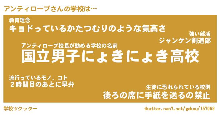 | 料理風あだ名 | 『節約★アンティロープと油揚げの玉子丼』 |
