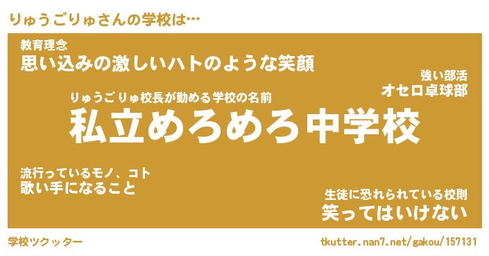 | 男性向けラノベタイトル風あだ名 | 『りゅうごりゅの憂鬱』 |