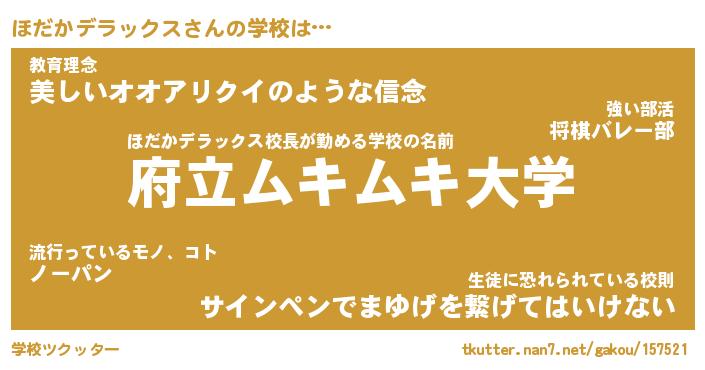| 男性向けラノベタイトル風あだ名 | 『ほだかデラックスの憂鬱』 |