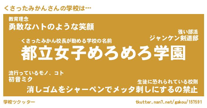 | 伝説のあだ名 | 『封印されしスナイパーくさったみかん』 |