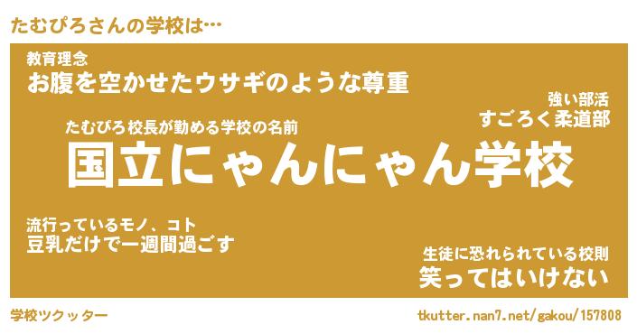 | ヒーロー風カッコイイあだ名 | 『スーパータムピロ』『銀牙騎士タム』 |