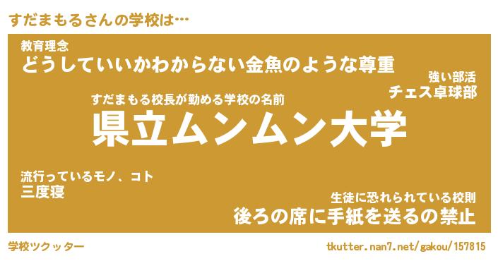 | 男性向けラノベタイトル風あだ名 | 『すだまもるの憂鬱』 |