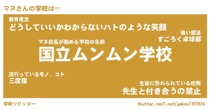 | 男性向けラノベタイトル風あだ名 | 『マヌの憂鬱』『ノーゲーム・ノーマヌ』 |