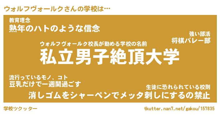 | 男性向けラノベタイトル風あだ名 | 『ウォルフヴォールクの憂鬱』 |
