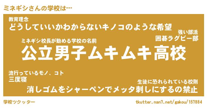 | 男性向けラノベタイトル風あだ名 | 『ミネギシの憂鬱』 |