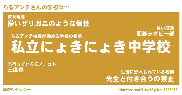 | 男性向けラノベタイトル風あだ名 | 『らるアンチの憂鬱』 |