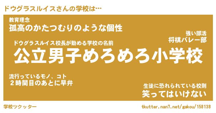 | 先生 | ドウグラスルイス先生が勤める学校名『県立しゃくれ中学校』 |
