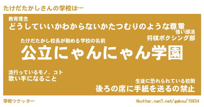 | 男性向けラノベタイトル風あだ名 | 『たけだたかしの憂鬱』 |