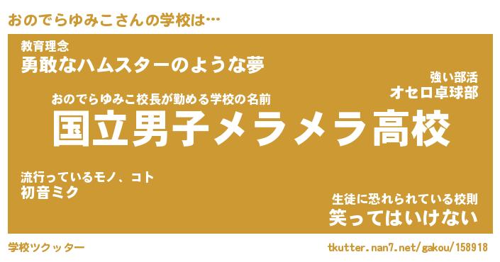 | 男性向けラノベタイトル風あだ名 | 『おのでらゆみこの憂鬱』 |