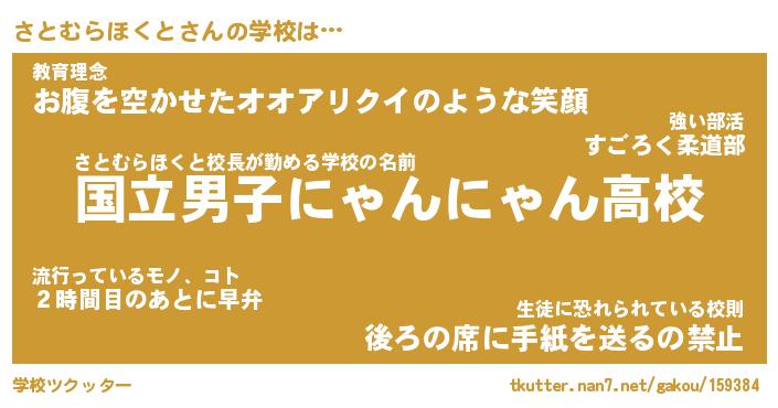 | 男性向けラノベタイトル風あだ名 | 『さとむらほくとの憂鬱』 |