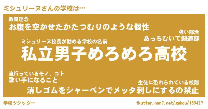 | ヒーロー風カッコイイあだ名 | 『スーパーミシュリーヌ』『暗黒騎士ミシ』 |