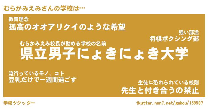 | ヒーロー風カッコイイあだ名 | 『スーパームラカミエミ』『天弓騎士ムラ』 |