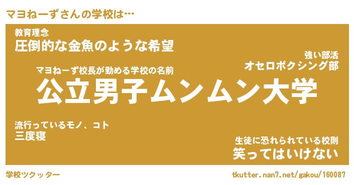 | 男性向けラノベタイトル風あだ名 | 『マヨねーずの憂鬱』 |