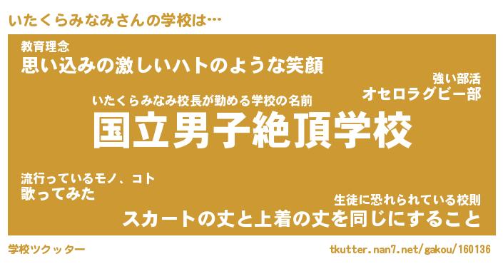 | 女子向けラノベタイトル風あだ名 | 『いたくらみなみ姫と円卓の騎士』 |