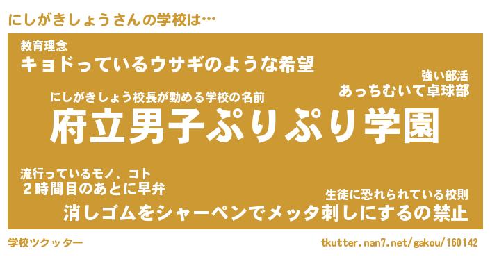 | 恥ずかしいあだ名 | 『プリティーにしがきしょう』『にしちん』 |