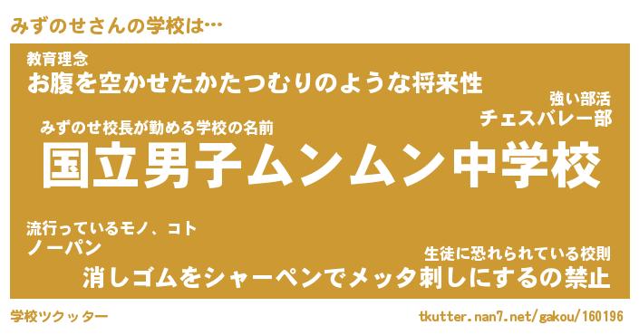 | 男性向けラノベタイトル風あだ名 | 『みずのせの憂鬱』 |