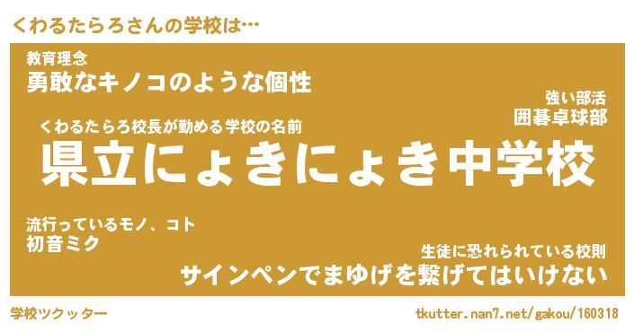 | 男性向けラノベタイトル風あだ名 | 『くわるたらろの憂鬱』 |