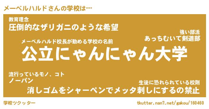 | 恥ずかしいあだ名 | 『プリティーメーベルハルド』『メーちん』 |