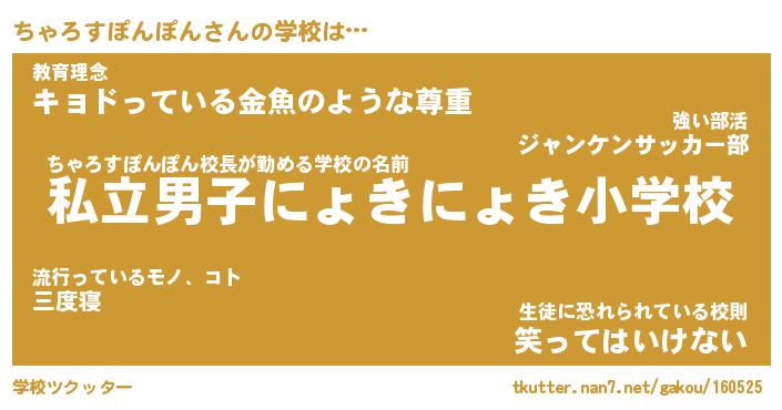 | 男性向けラノベタイトル風あだ名 | 『ちゃろすぽんぽんの憂鬱』 |