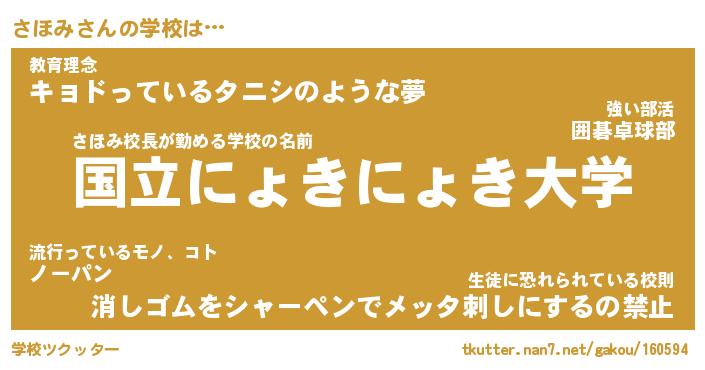 | ヘコむあだ名 | 『さほにゅー』『酢こんぶ』『さほを』 |