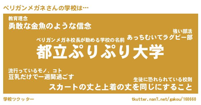 | 男性向けラノベタイトル風あだ名 | 『ペリガンメガネの憂鬱』 |