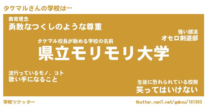 | 男性向けラノベタイトル風あだ名 | 『タケマルの憂鬱』 |