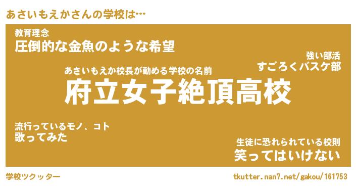 | 胡散臭い通販商品みたいなあだ名 | 『億万長者になれるブレスレット…その名も「あさいもえか」』 |
