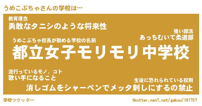 | ヒーロー風カッコイイあだ名 | 『スーパーウメコブチャ』『黄金騎士ウメ』 |