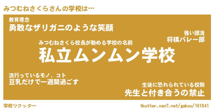 | 男性向けラノベタイトル風あだ名 | 『みつむねさくらの憂鬱』 |
