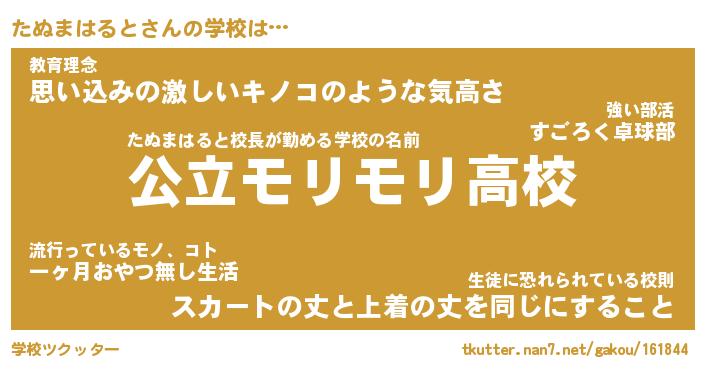 | 男性向けラノベタイトル風あだ名 | 『たぬまはるとの憂鬱』 |