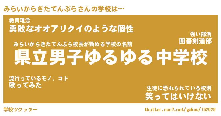 | ヒーロー風カッコイイあだ名 | 『スーパーミライカラキタテンプラ』 |
