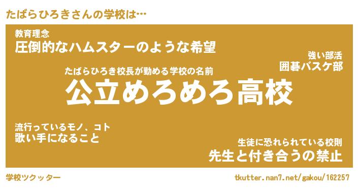 | 胡散臭い通販商品みたいなあだ名 | 『必ず成功する霊験あらたかなお札…その名も「たばらひろき」』 |